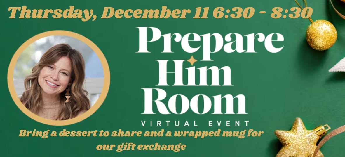 Ladies, join us in person Thursday, December 11, from 6:30-8:30, as we watch the Prepare Him Room Simulcast. We will be having an hour of fellowship and a gift exchange. Then we will be watching the simulcast together.
